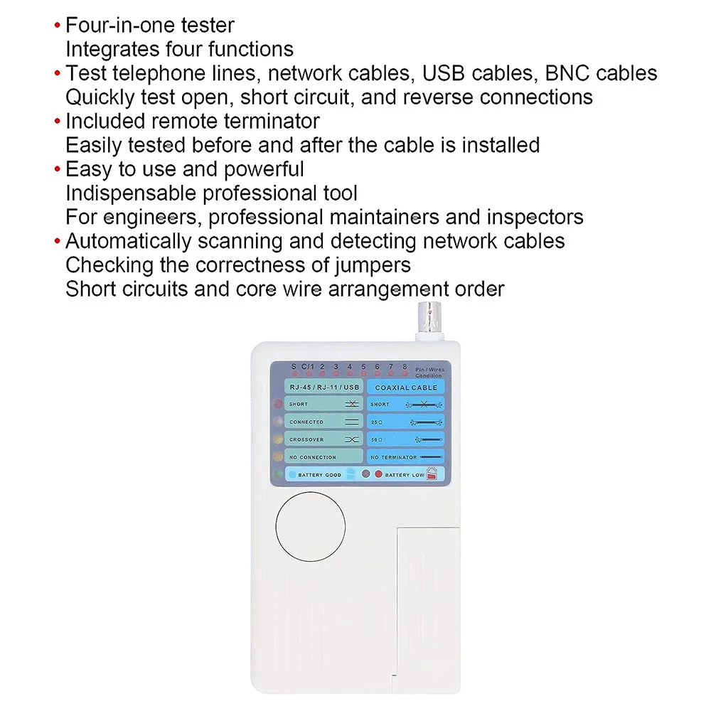 جهاز اختبار كابل الشبكة الاحترافي متعدد الوظائف 4 في 1 RJ45/RJ11/USB/BNC LAN كابل Cat5 Cat6 جهاز اختبار الأسلاك