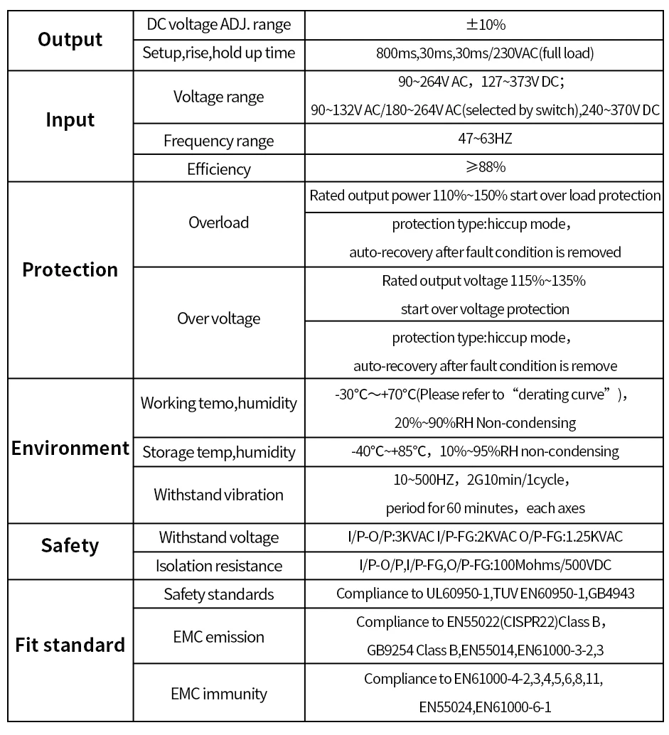 2.Output:DC 5V/DC 12V/DC 24V/DC 36V/DC 48V