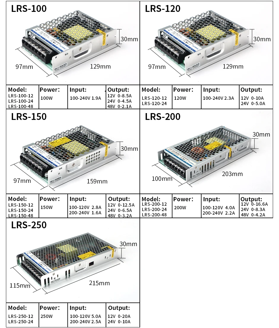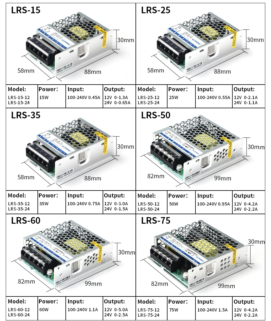 GTRIC LRS سلسلة تحويل التيار الكهربائي تيار مستمر 12 فولت 24 فولت AC110-250V محول الطاقة 35 واط 60 واط 75 واط 100 واط 120 واط LED الإضاءة محول